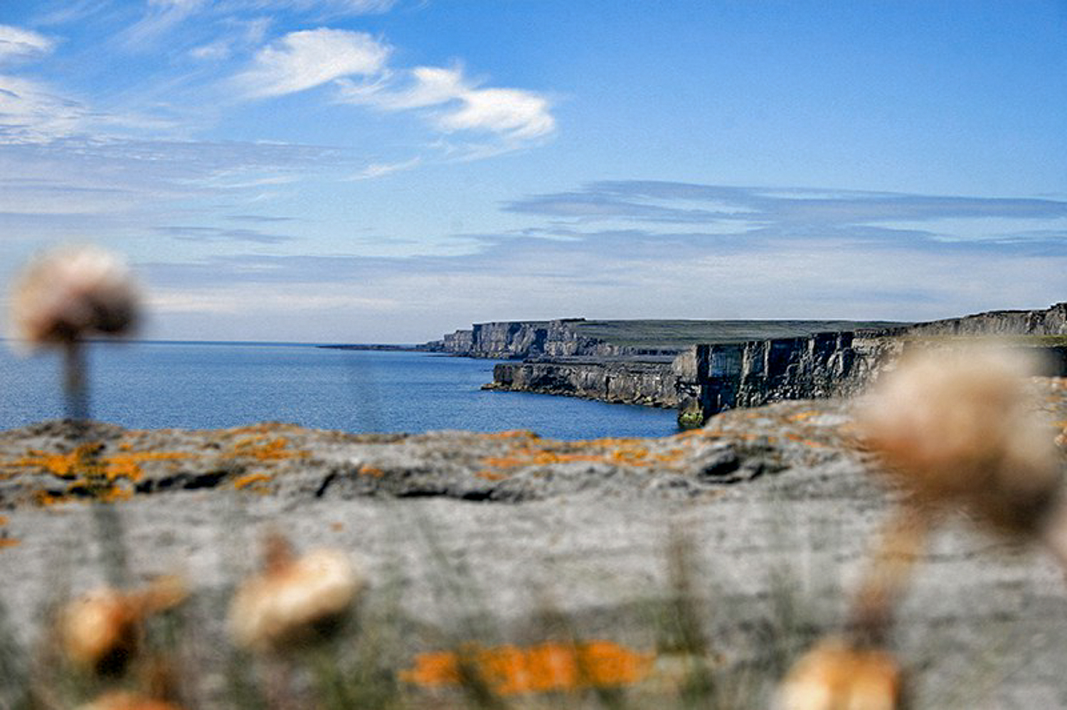 This impressive cliff side ruin on the southern side of the island, like Dun Aonghas is gaurded by natural defences and by a Cheavaux – de – frise. The Black Fort whilst not as popular as Dun Aonghas has a similarly impressive presence.